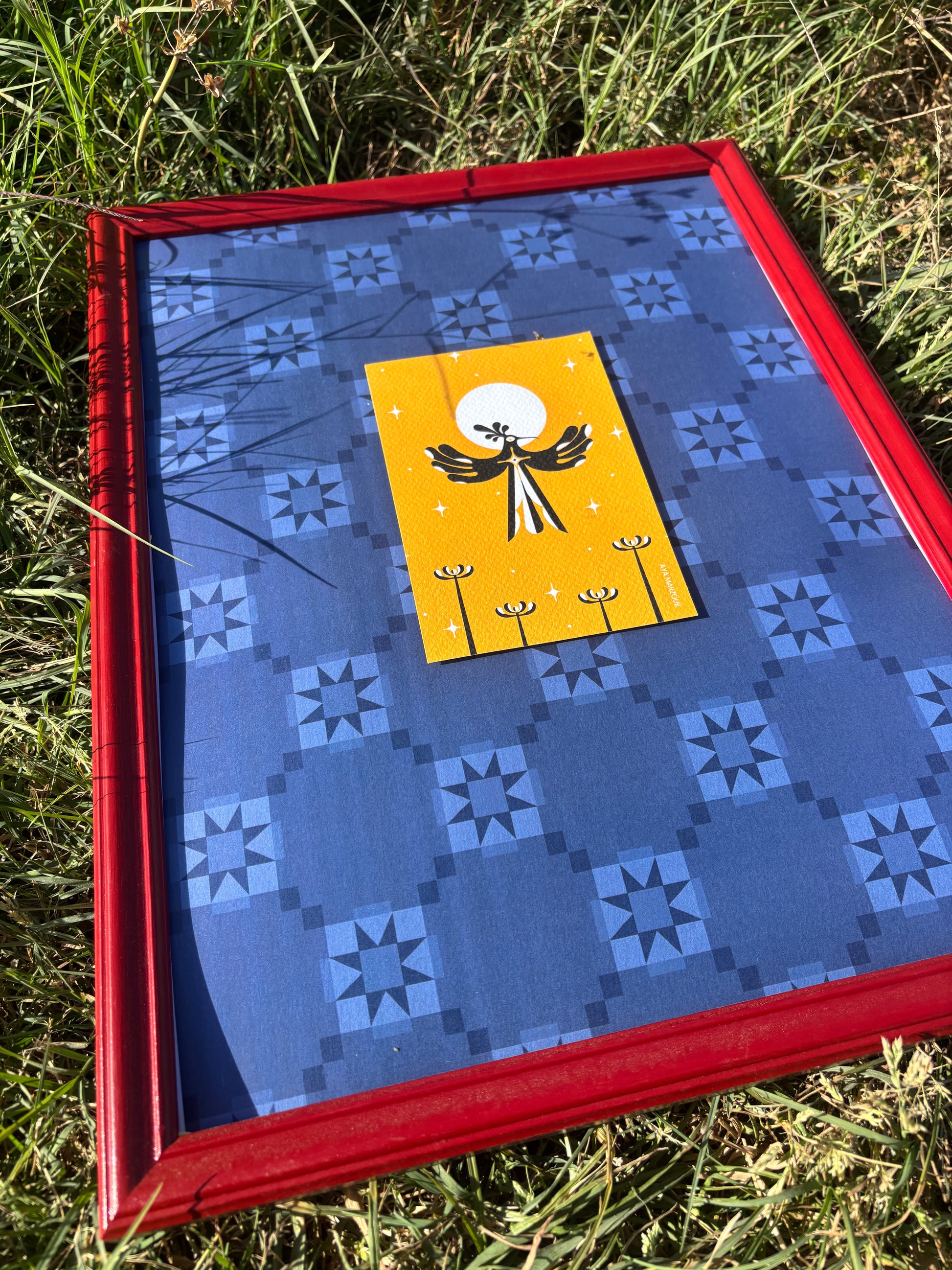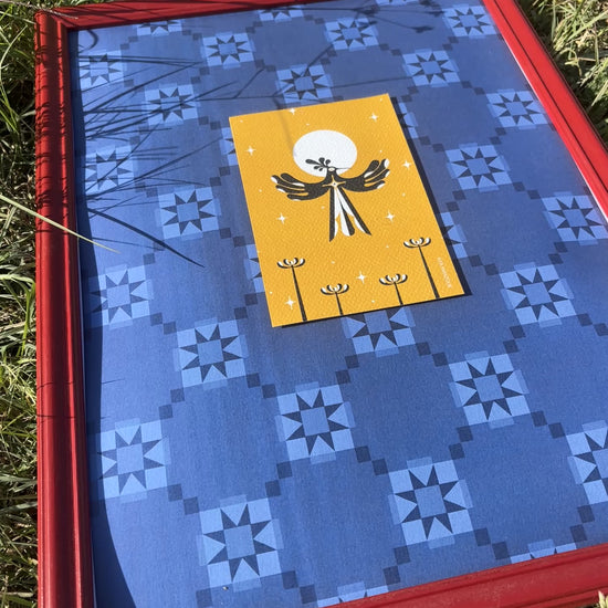 This is a fully framed artwork, thoughtfully paired with our signature colorful frame and matboard design.